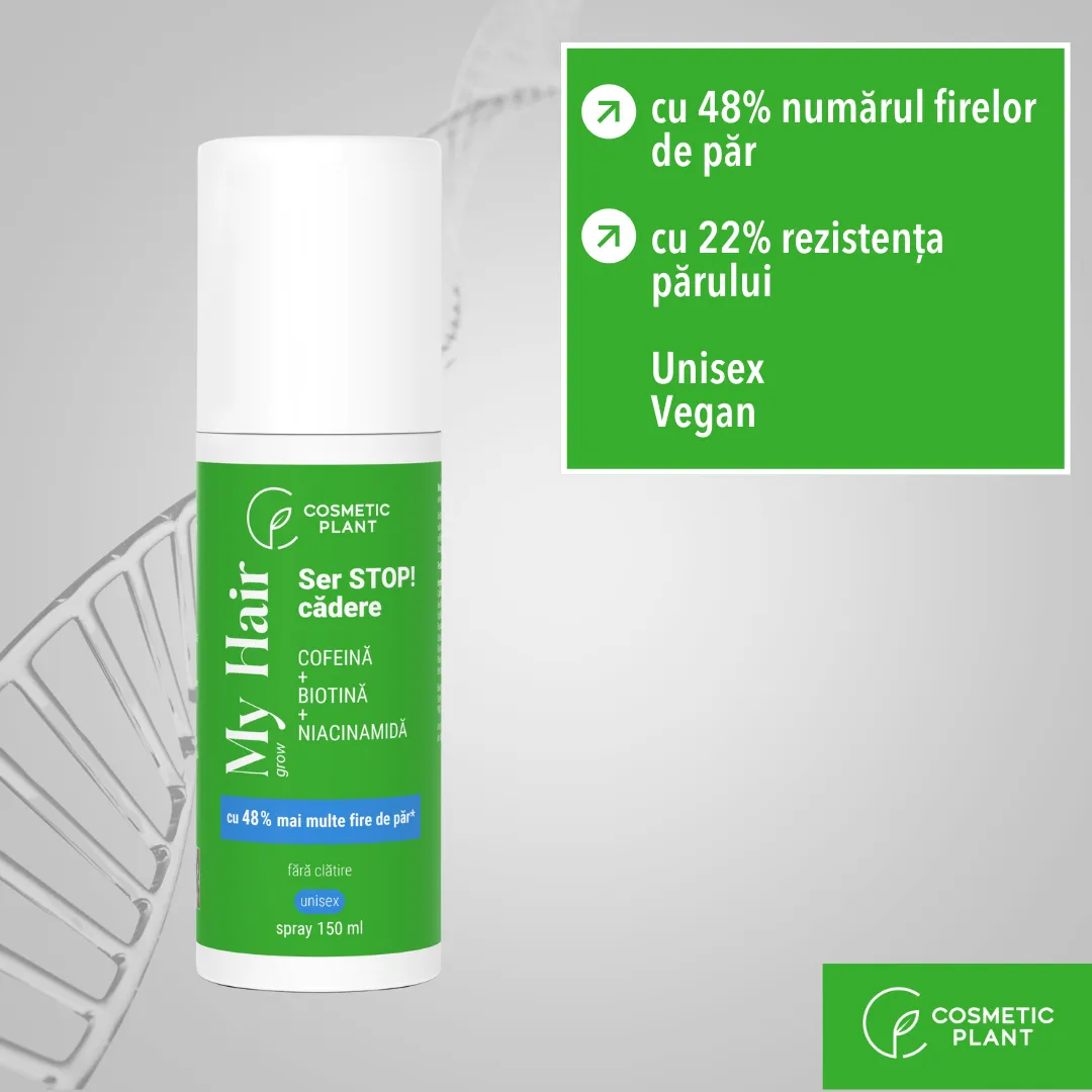 Serul STOP! cădere My Hair grow este un remediu cu o formulă unică, care hrănește rădăcina părului și energizează scalpul. Mixul optim de ingrediente cu efecte recunoscute în menținerea sănătății părului și scalpului – cofeină, biotină, niacinamidă – asigură creșterea de fire noi de păr.